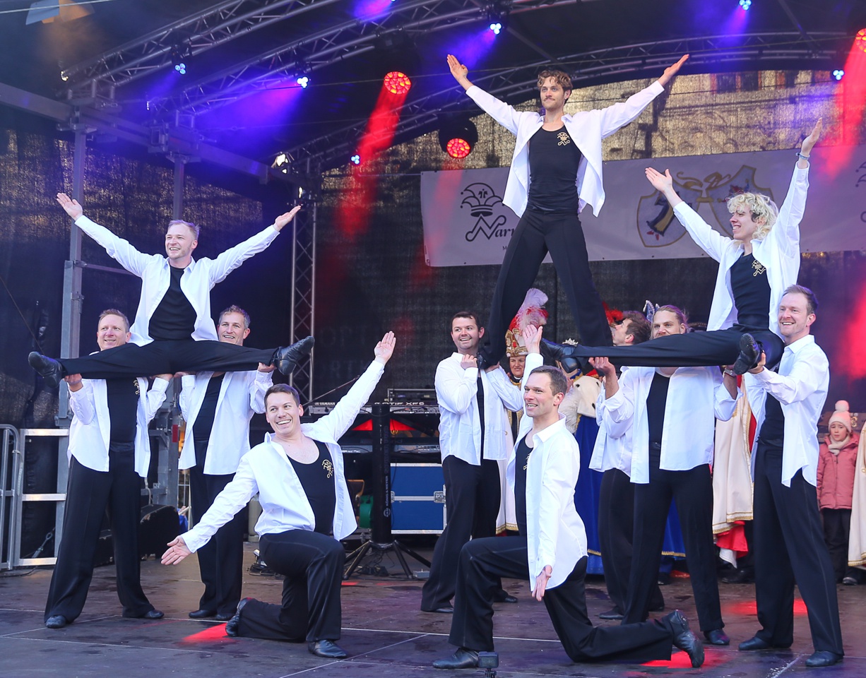 Mit bewundernswerter Präzision legen die Jungs begeistert los und folgen dem Kommando der Faschingsprinzessin.