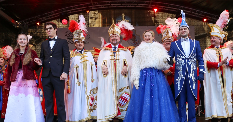 Unser Bürgermeister spricht die Grußworte der Landeshauptstadt und überreicht symbolisch den Stadtschlüssel. Bis Aschermittwoch am 10. Februar übernimmt unser Prinzenpaar somit die närrische Regentschaft der Stadt.