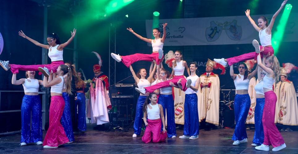 Ein buntes Bühnenprogramm mit Auftritt der Garden und Partymusik.